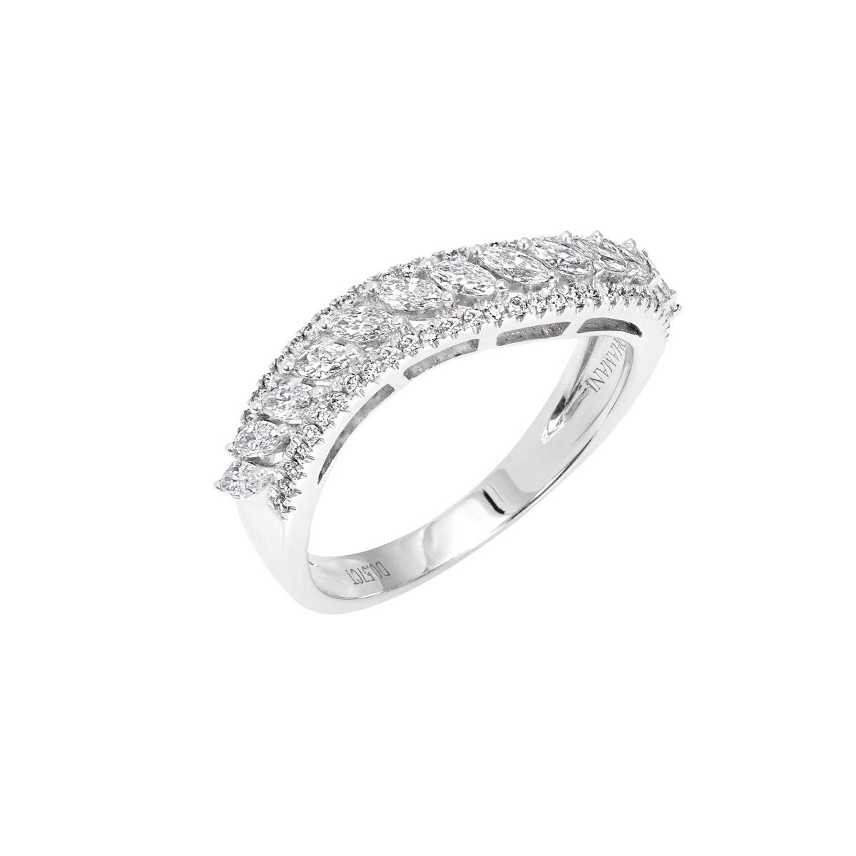 Attributes: 18K White Gold, Galaxy Inspired Ring, Diamonds, Eternity Band, Engagement Ring.