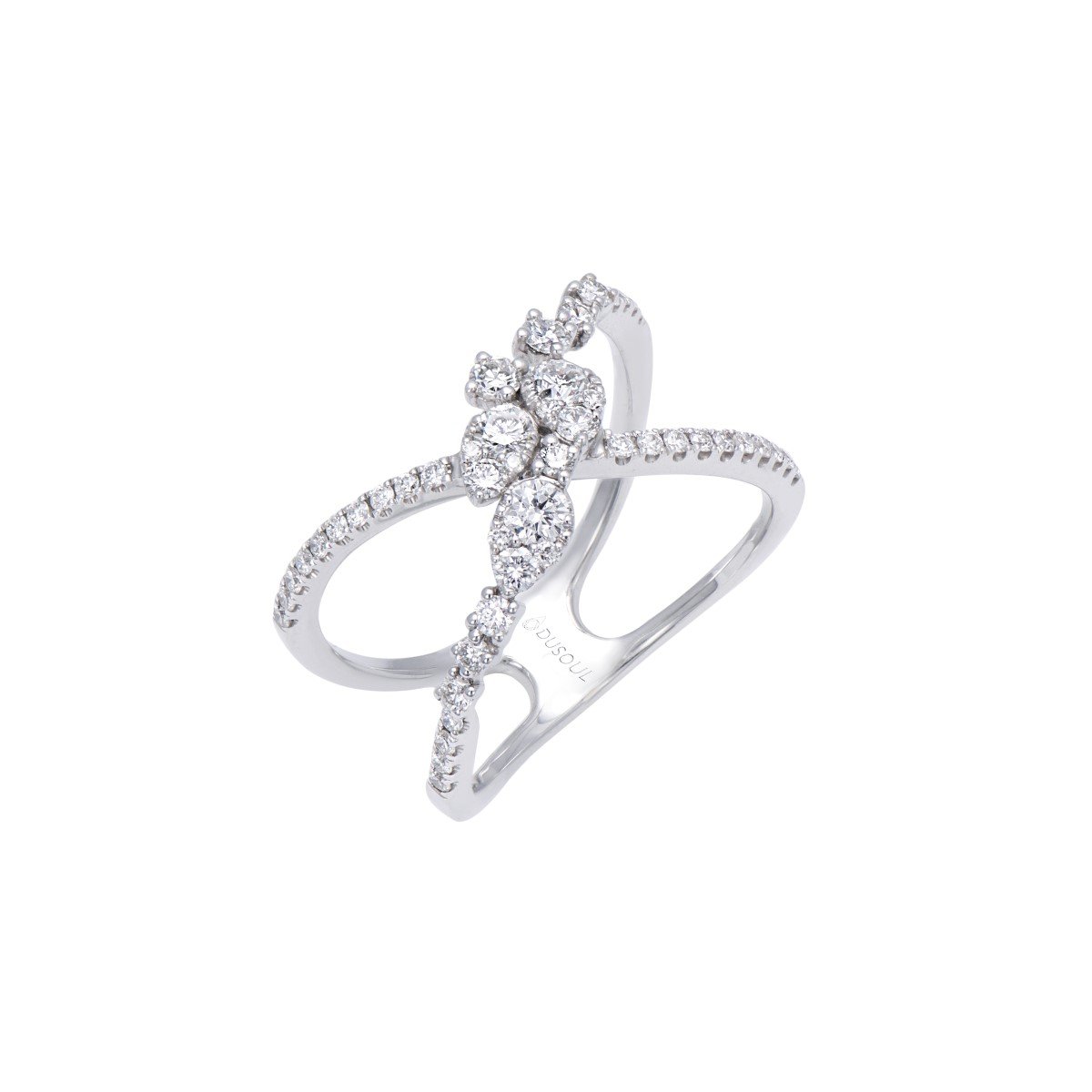 Attributes: Criss cross, Spiral ring, white gold, diamonds.
