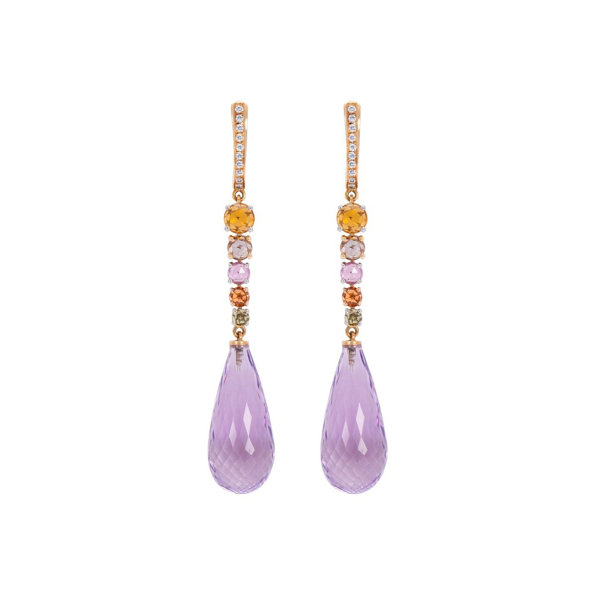 Attributes: Multi Sapphire Earrings, Diamonds, 18k White Gold & Rose Gold, Amethyst