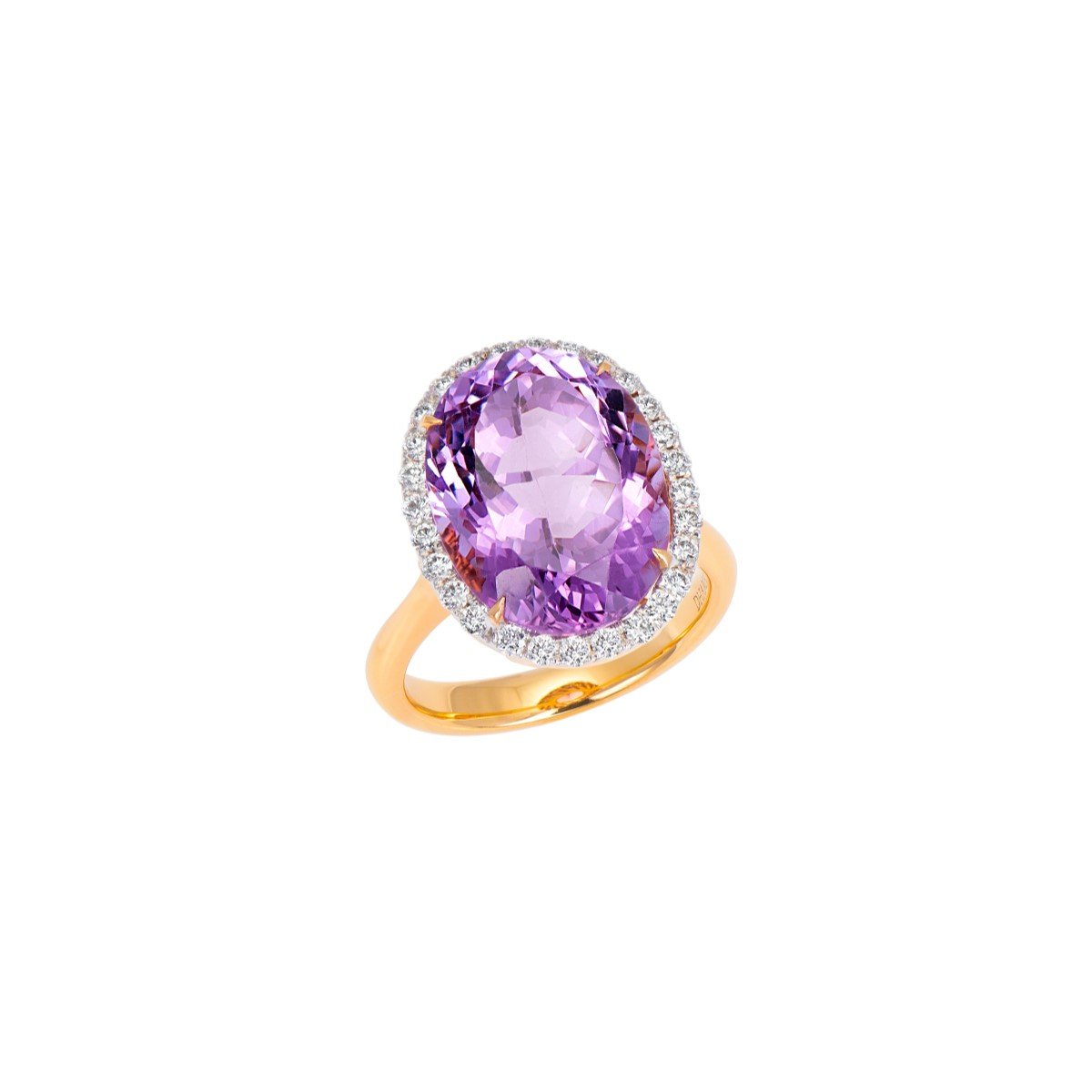 Attributes: Amethyst Ring, Diamond, 18k Rose Gold, Oval Shape