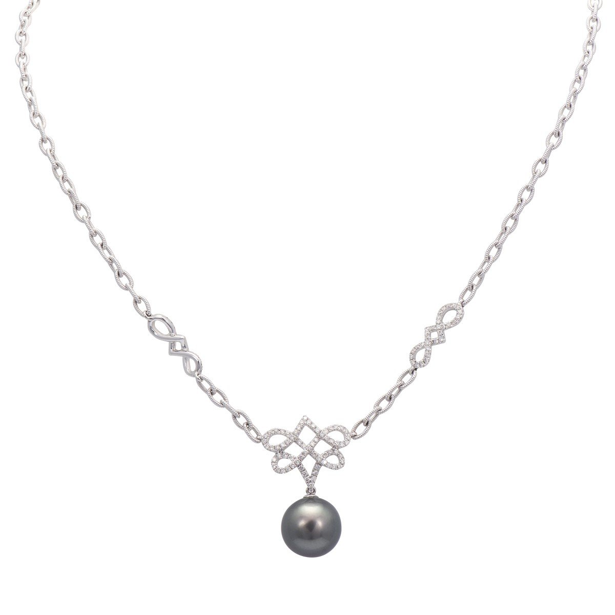 This 13mm black tahitian pearl pendant is made of 18K White Gold and exhibits a gorgeous black pearl.