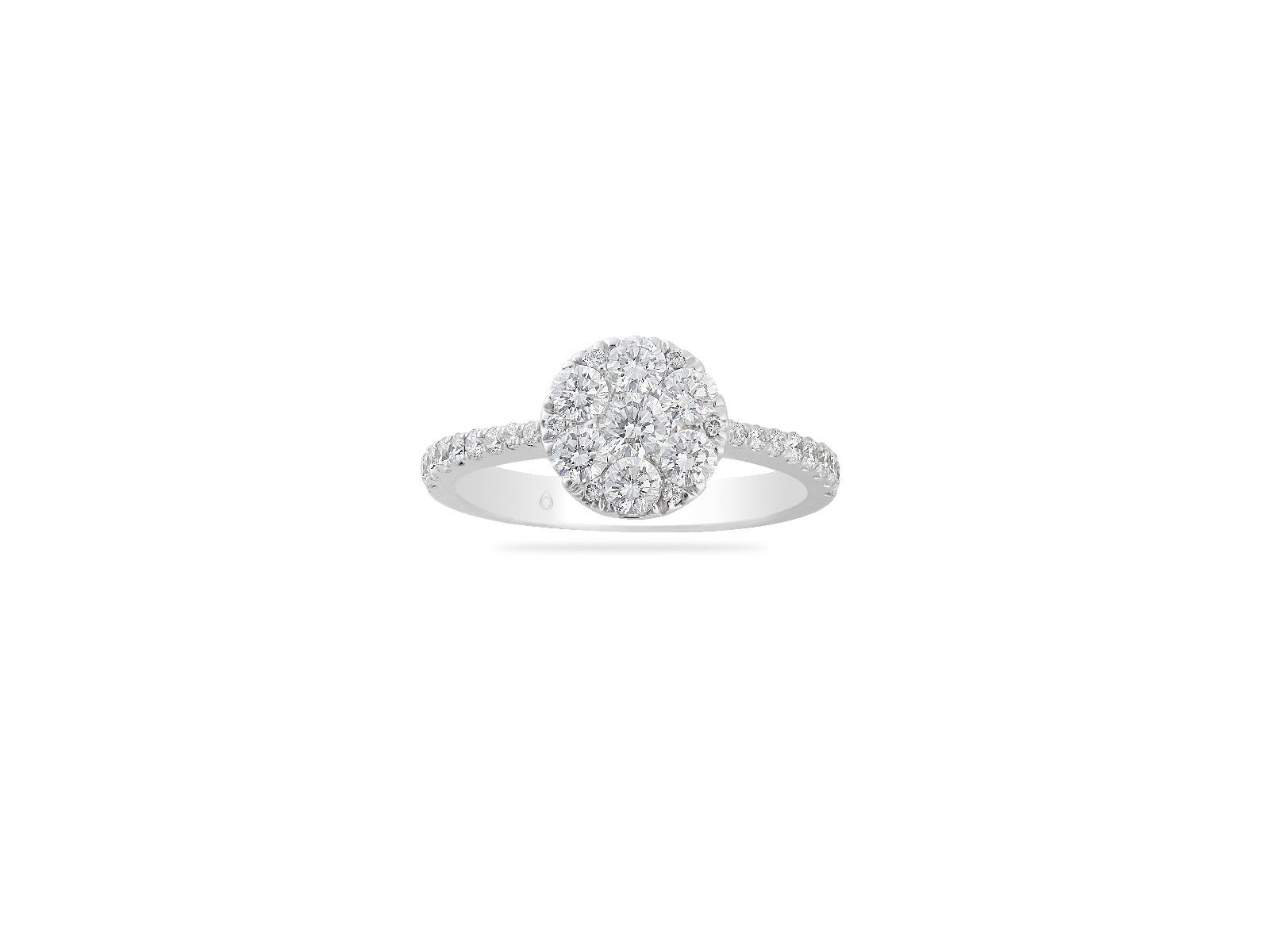 Attributes: 18K White Gold, Round Ring, Illusion Setting Diamonds, Gift.