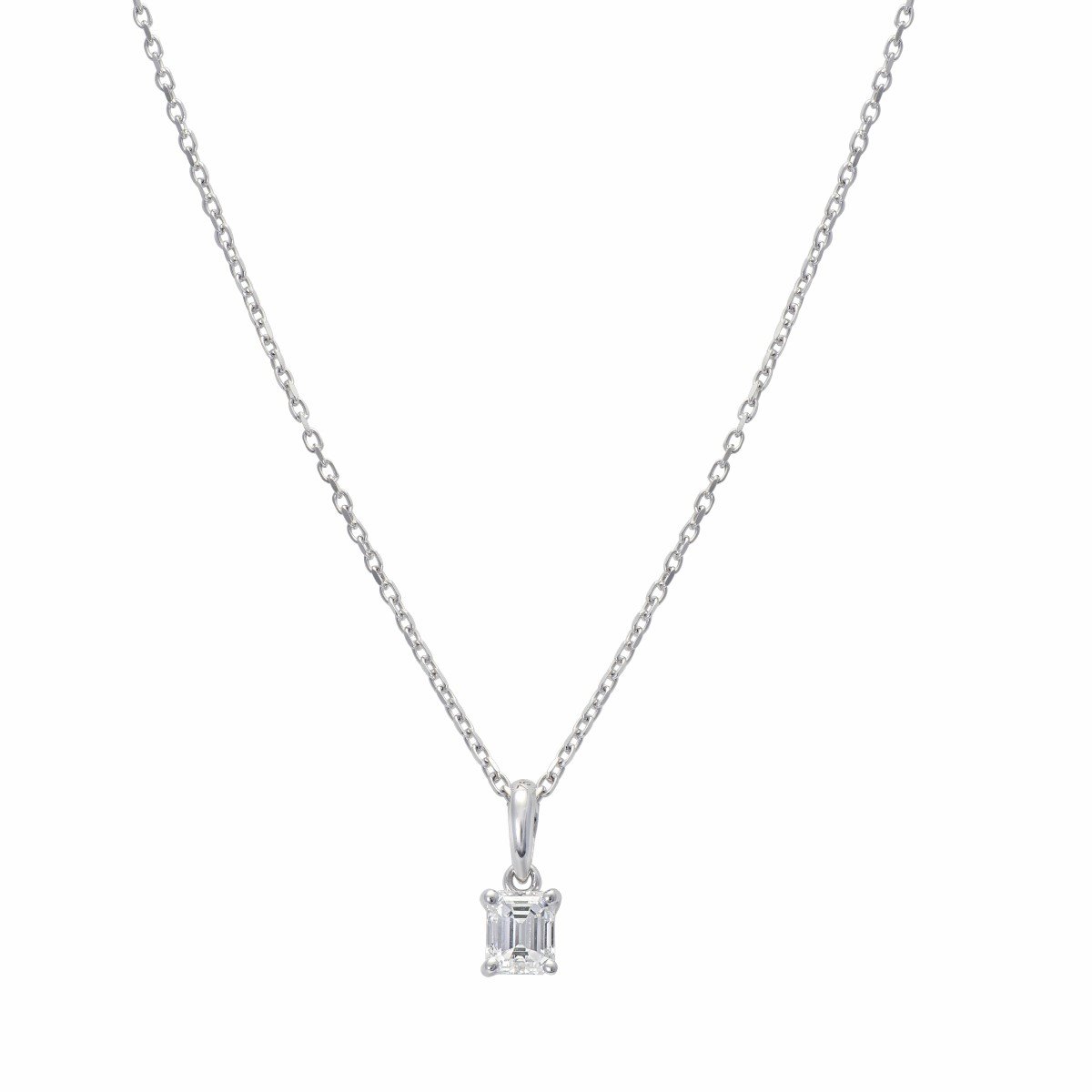 Attributes: Emerald-Cut Solitaire Pendant, Diamond, 18K White Gold