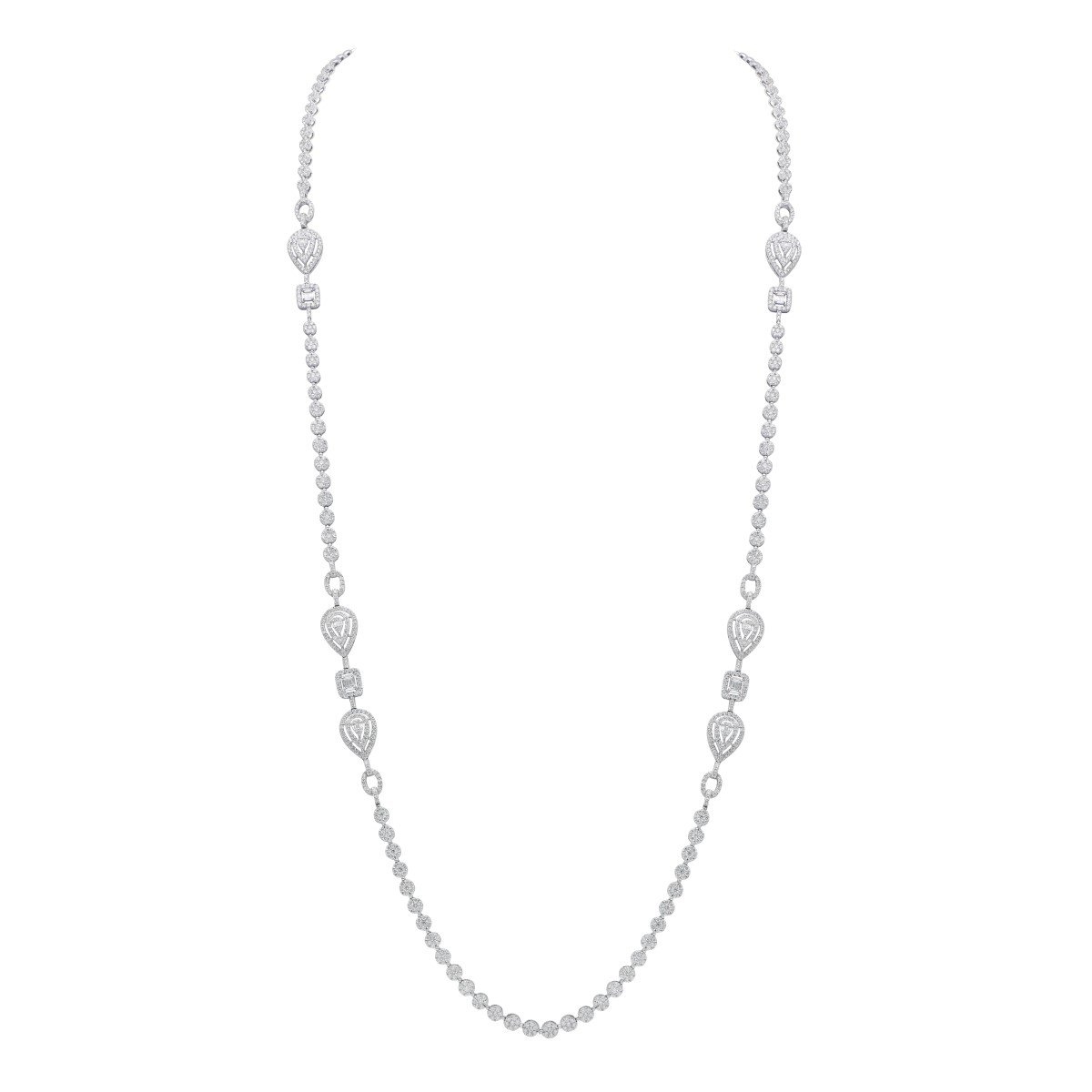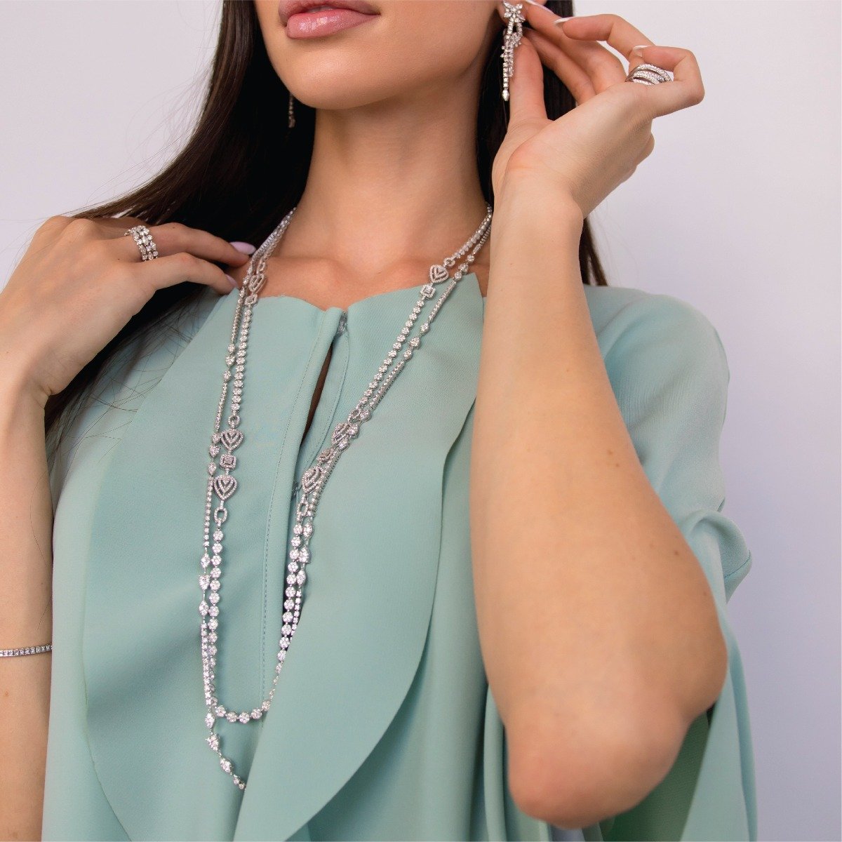 Attributes: Long Chain, Layer Necklace, Diamonds, Arabic, Ramadan, Eid, 18K White Gold.
